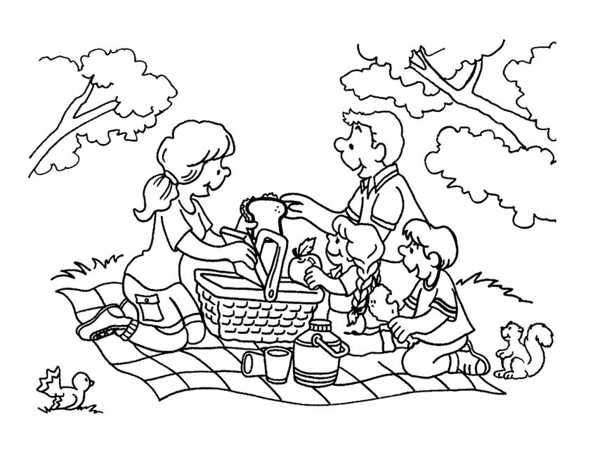 ![Раскраска дети на пикнике для детей]()