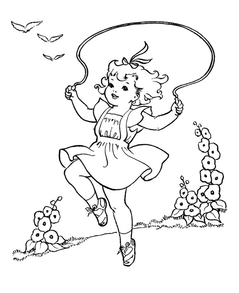 ![Раскраска девочка на качелях]()