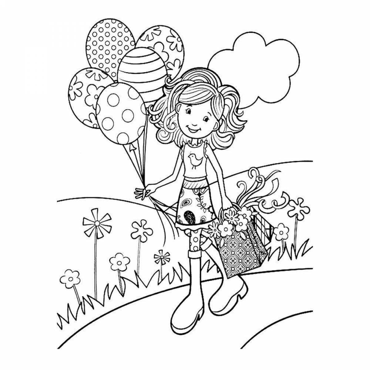 Девочка с шариками раскраска