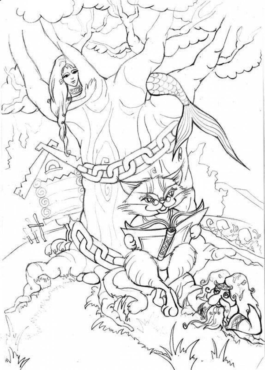 У Лукоморья дуб зеленый раскраска