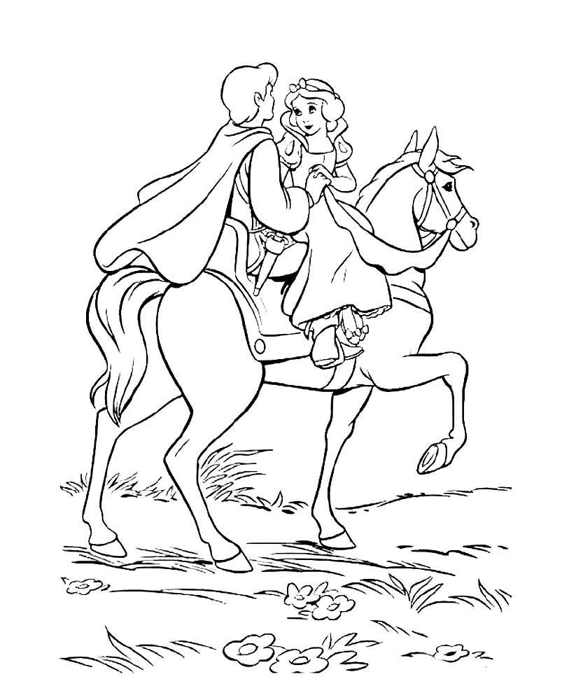 Принц и принцесса на коне раскраска
