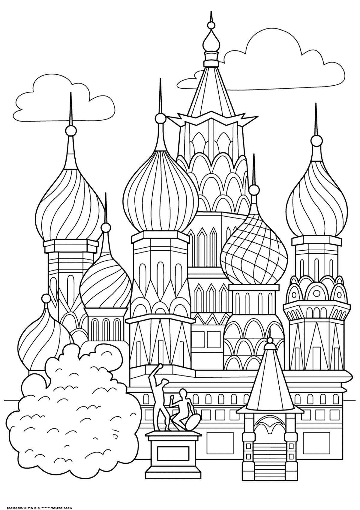 ![Раскраска храм Василия Блаженного в Москве для детей]()