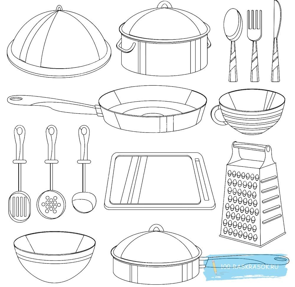 ![Кухонная посуда раскраска для детей]()