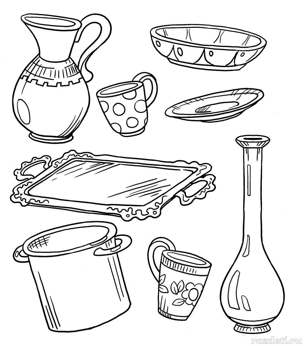 Раскраски посуда для детей 6-7 лет