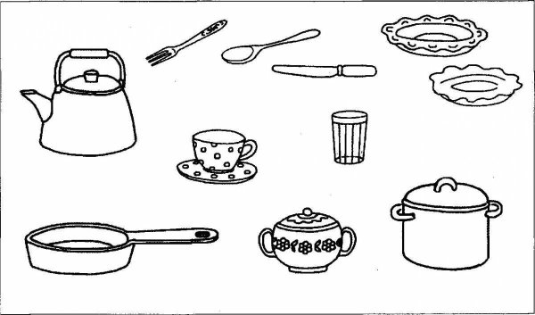 ![Раскраска кухонная посуда]()