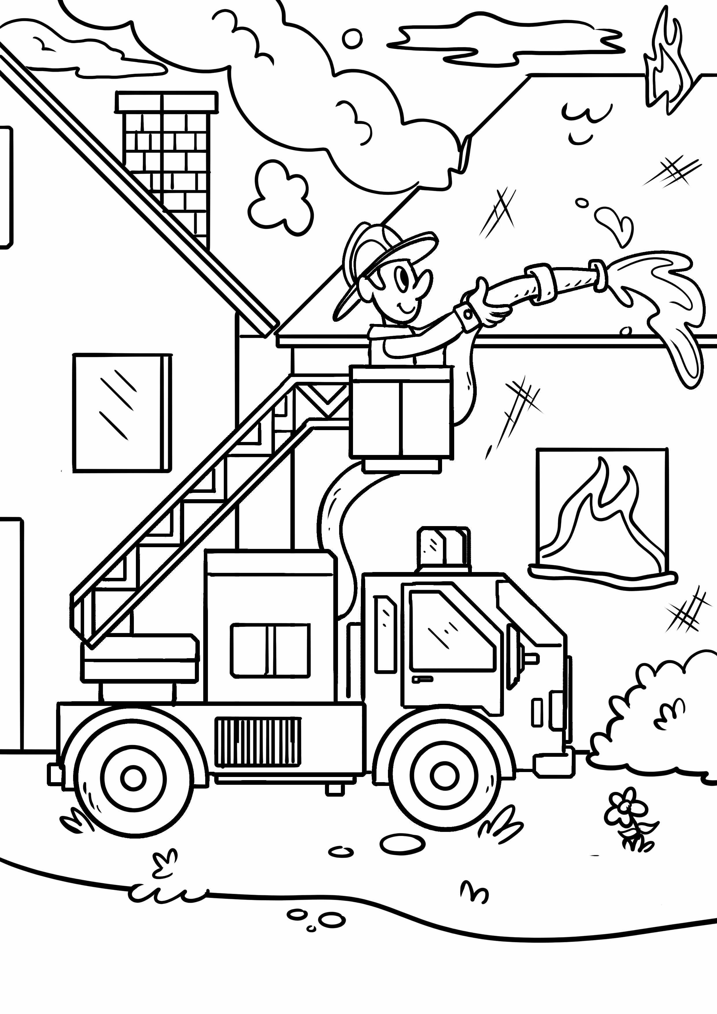 ![Раскраски на тему пожара для детей]()