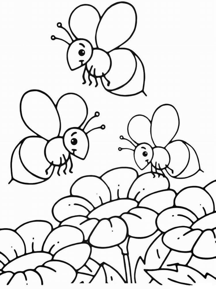 Раскраска пчела на цветке