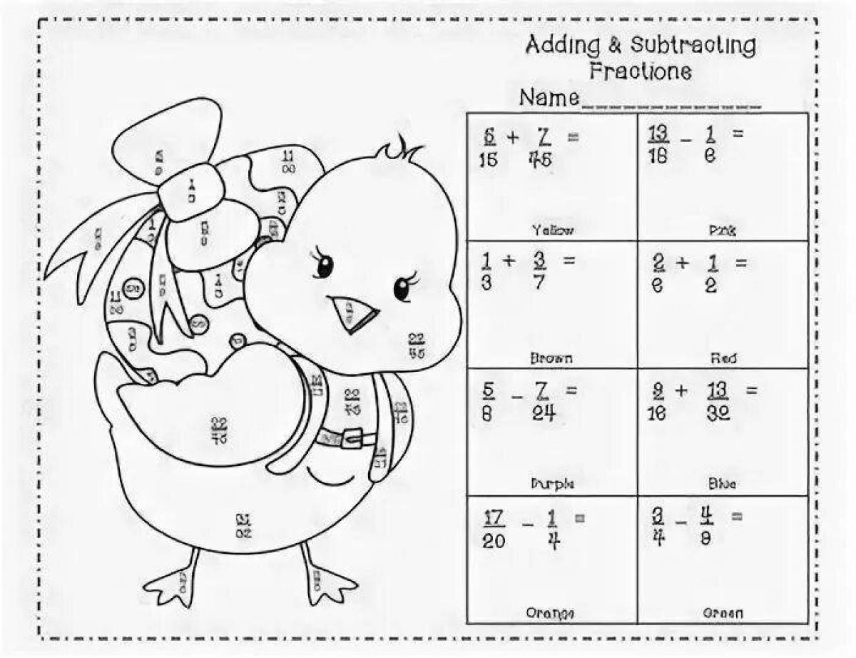 Математические раскраски сложение дробей