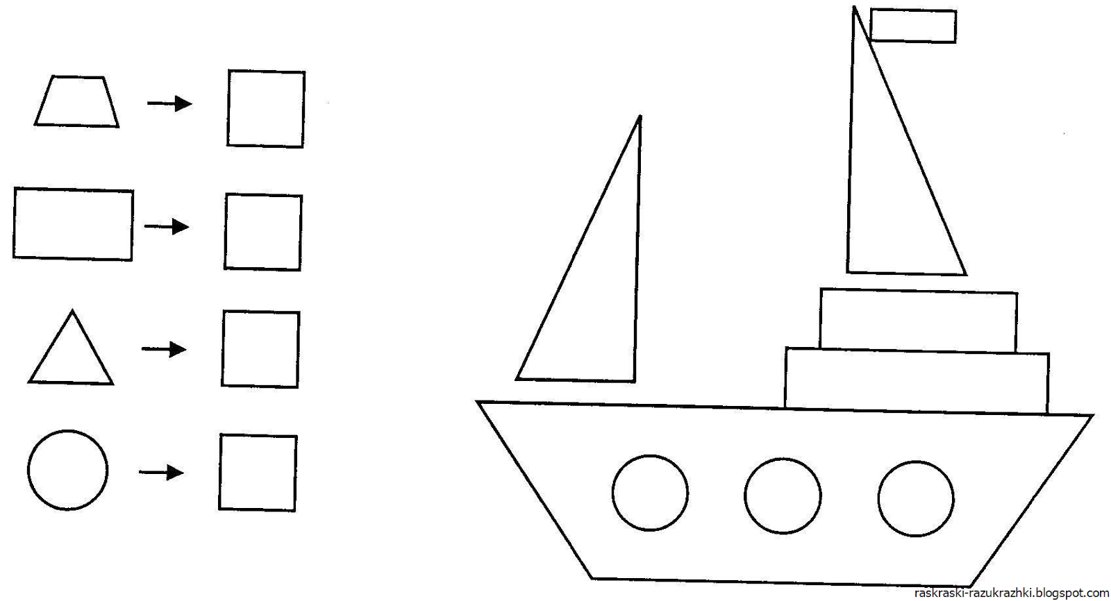 ![Геометрические фигуры для детей раскраска]()