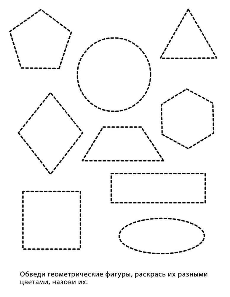 Обведи геометрические фигуры для детей 4-5 лет
