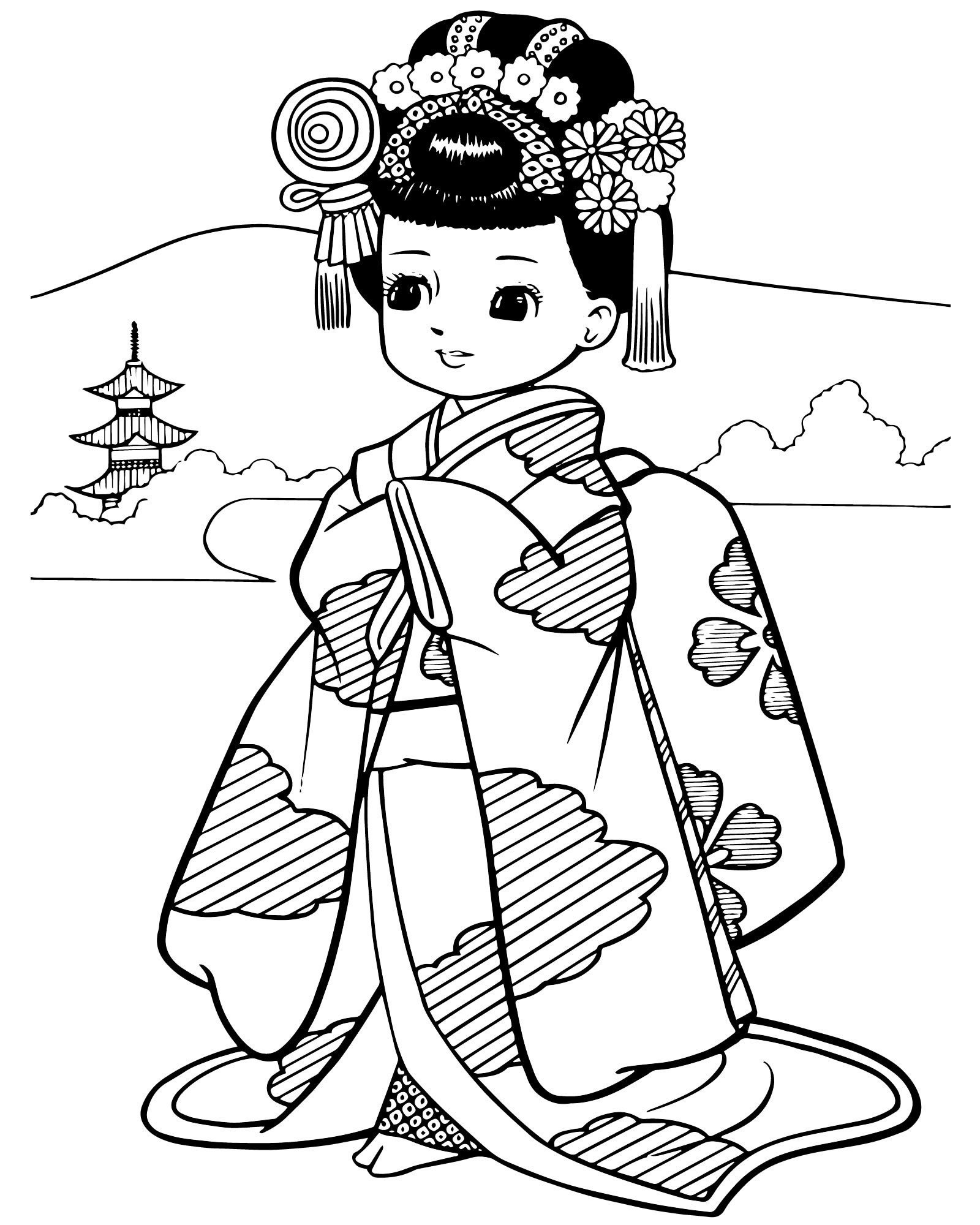 Раскраски японские девушки