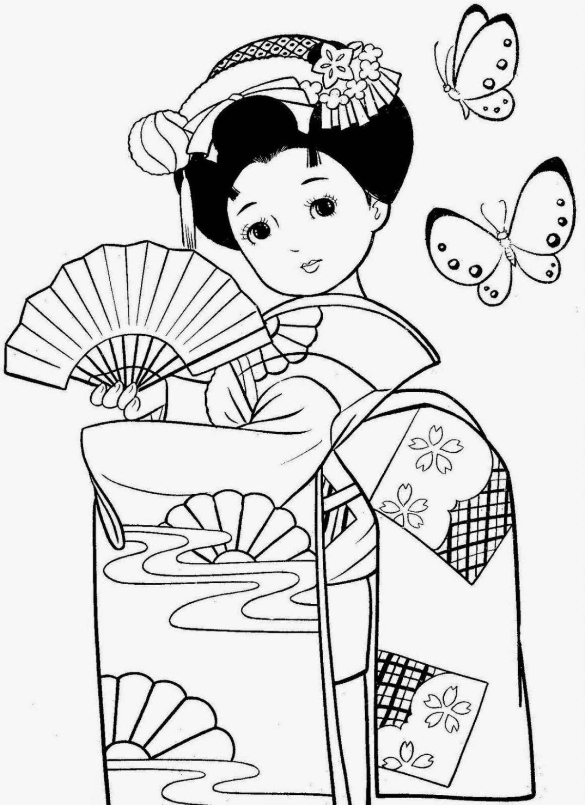 ![Раскраски японские девушки]()