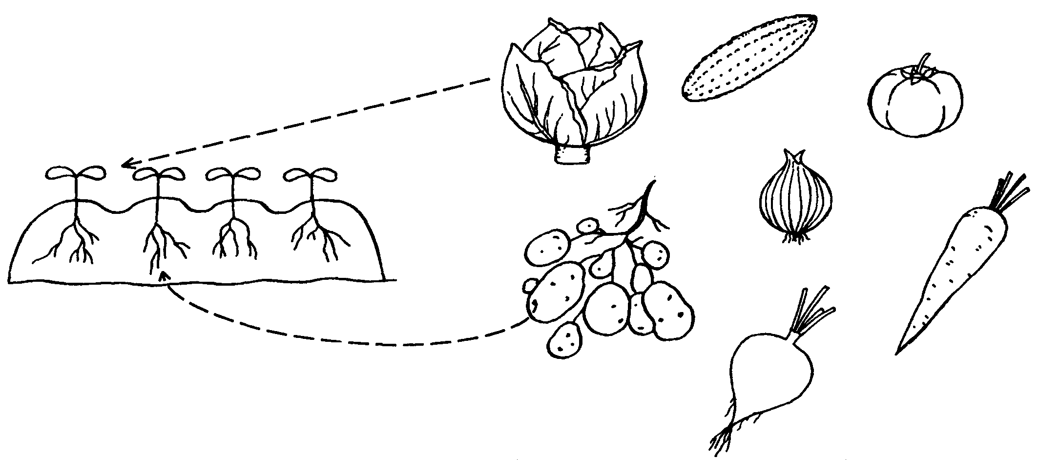![Раскраска овощи на грядке]()