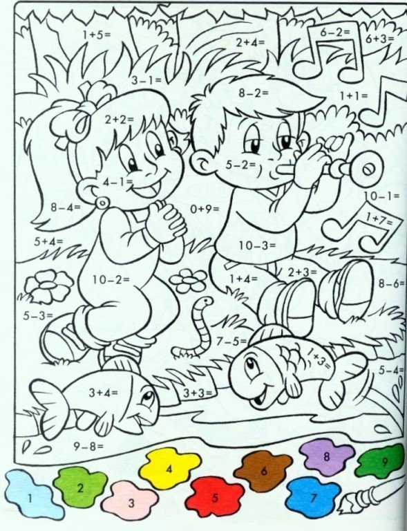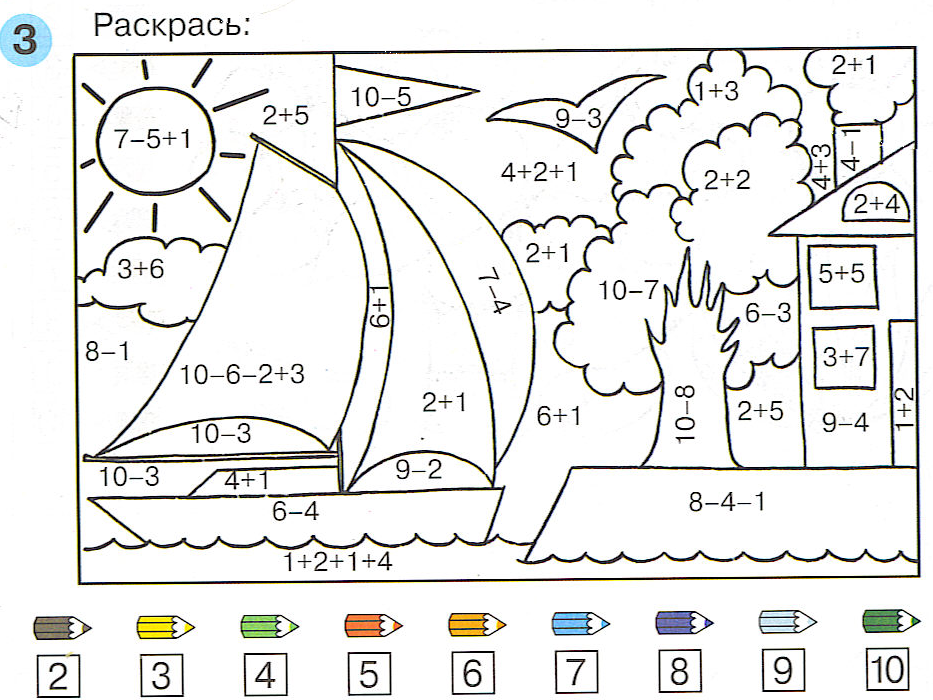 ![Сосчитай и раскрась для детей 6-7 лет]()