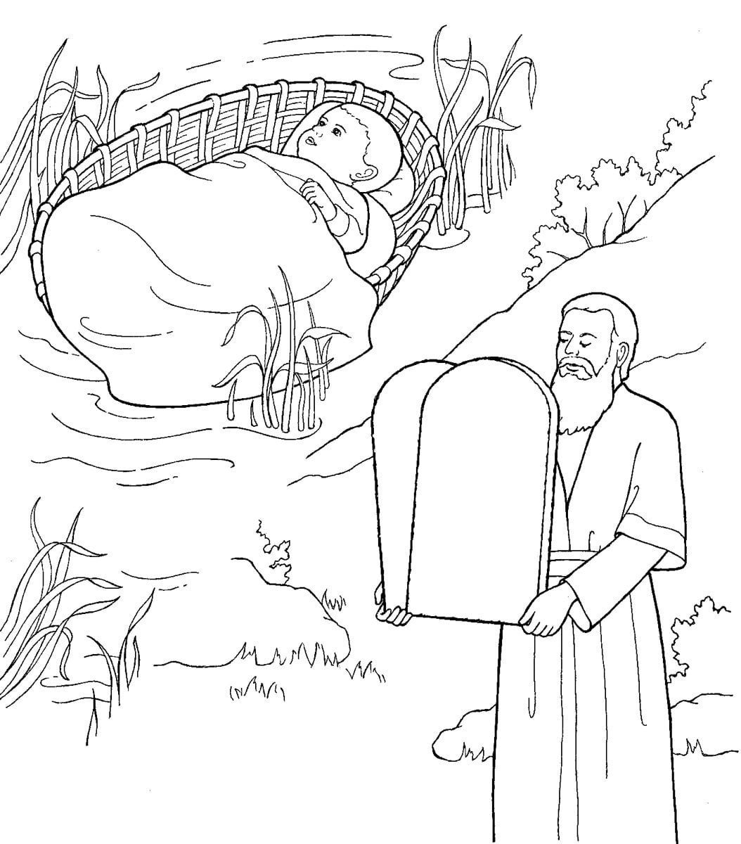 ![Раскраска Моисей в корзинке]()