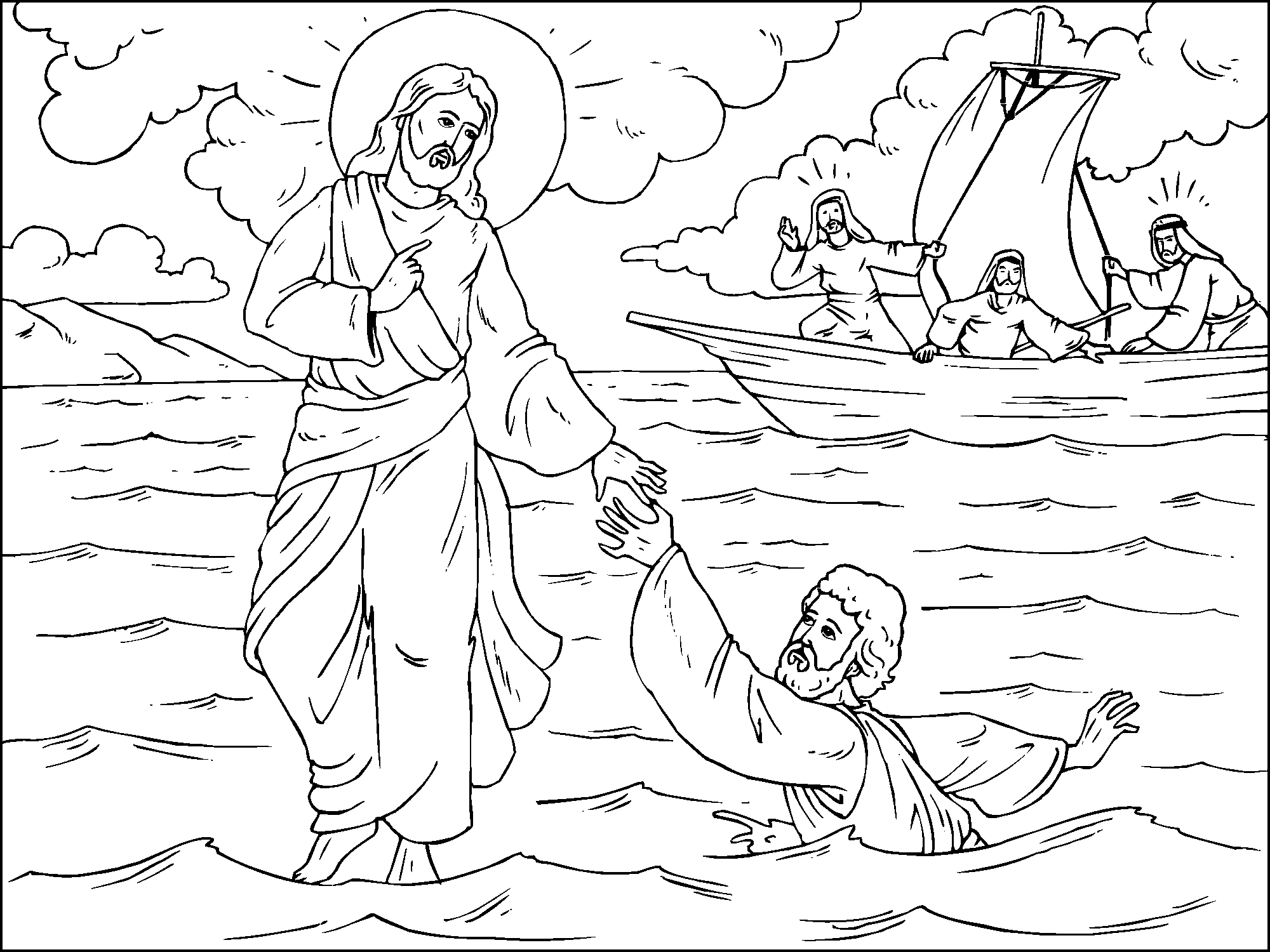 Иисус усмиряет бурю раскраска