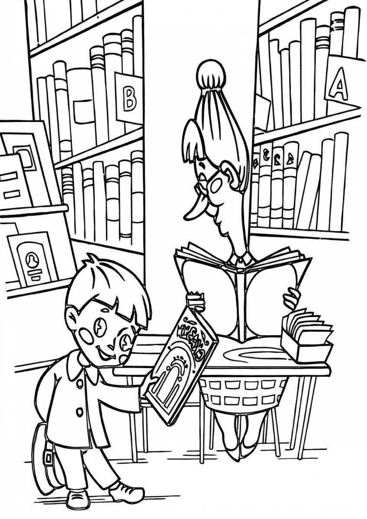 Раскраски по теме "библиотека" позволят детям и взрослым окунуться в волшебный мир книг и чтения. Набор состоит из разнообразных иллюстраций, на которых изображены уютные библиотечные залы, полки с книгами, читатели, а также герои известных литературных произведений. Эти раскраски не только помогут развить воображение и творческие навыки, но и стимулируют интерес к чтению и библиотекам. Каждый рисунок можно окрасить, добавив свои яркие и насыщенные цвета, создавая свою уникальную картину библиотечного мира. Раскраски по теме "библиотека" отлично подходят для использования дома, в школе или на занятиях художественной графикой. Они станут прекрасным подарком для любителей чтения и любознательных исследователей литературного мира.