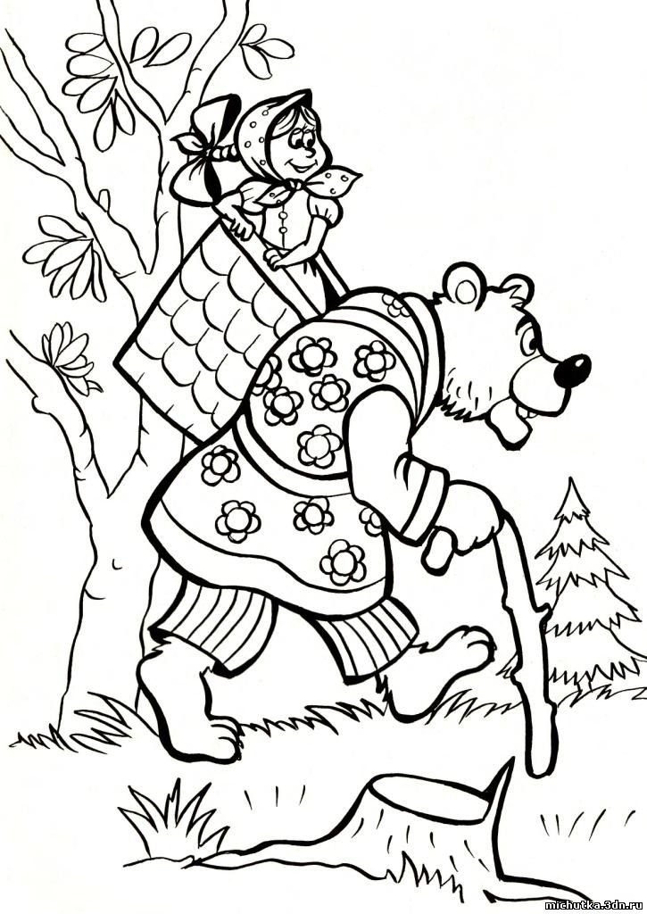 ![Маша и медведь русская народная сказка раскраска для малышей]()