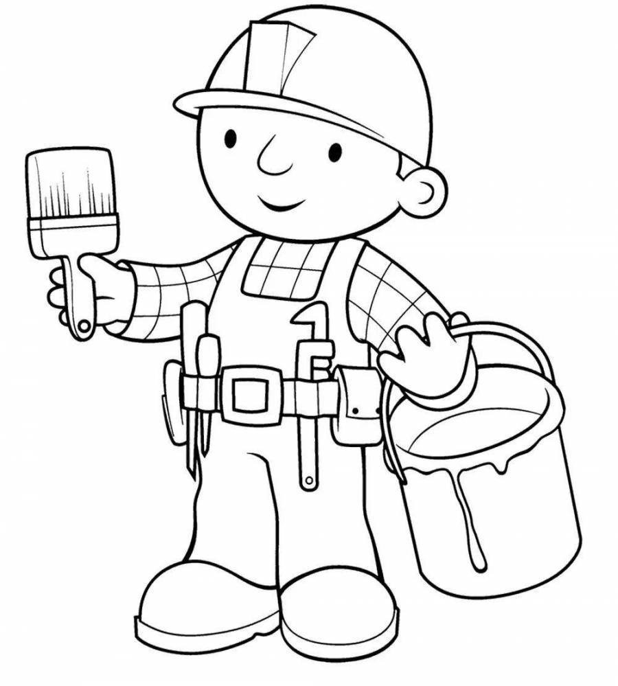 Строитель раскраска для детей