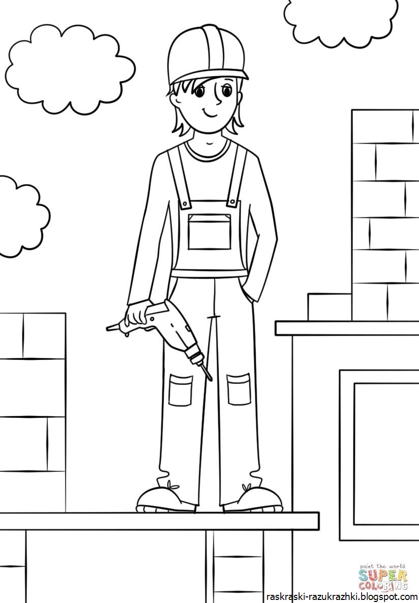 ![Профессия Строитель раскраска]()