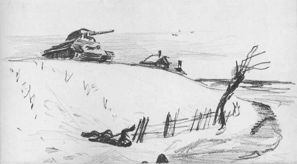 ![Военный пейзаж карандашом]()