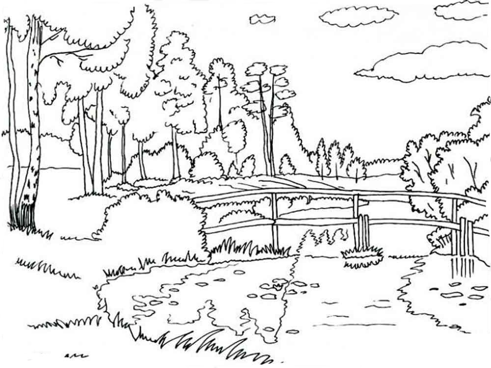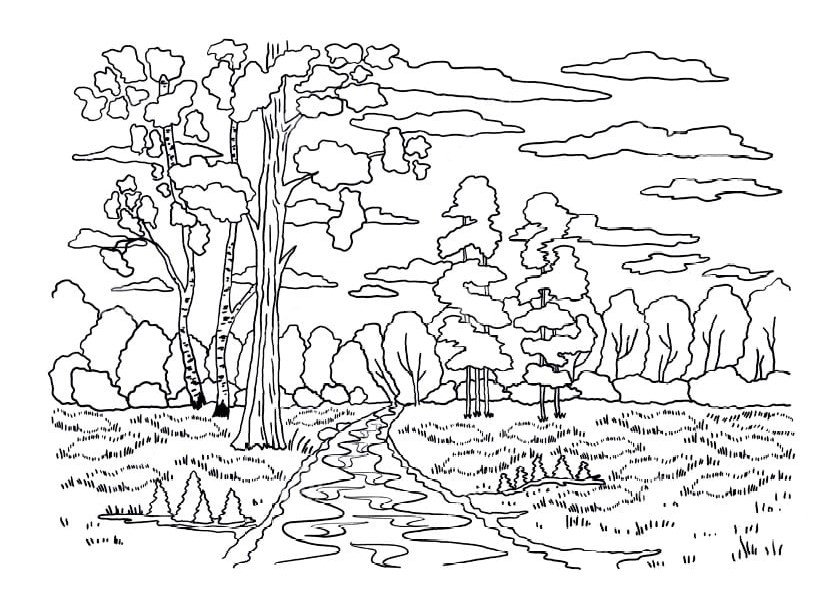 ![Раскраска Речной пейзаж]()