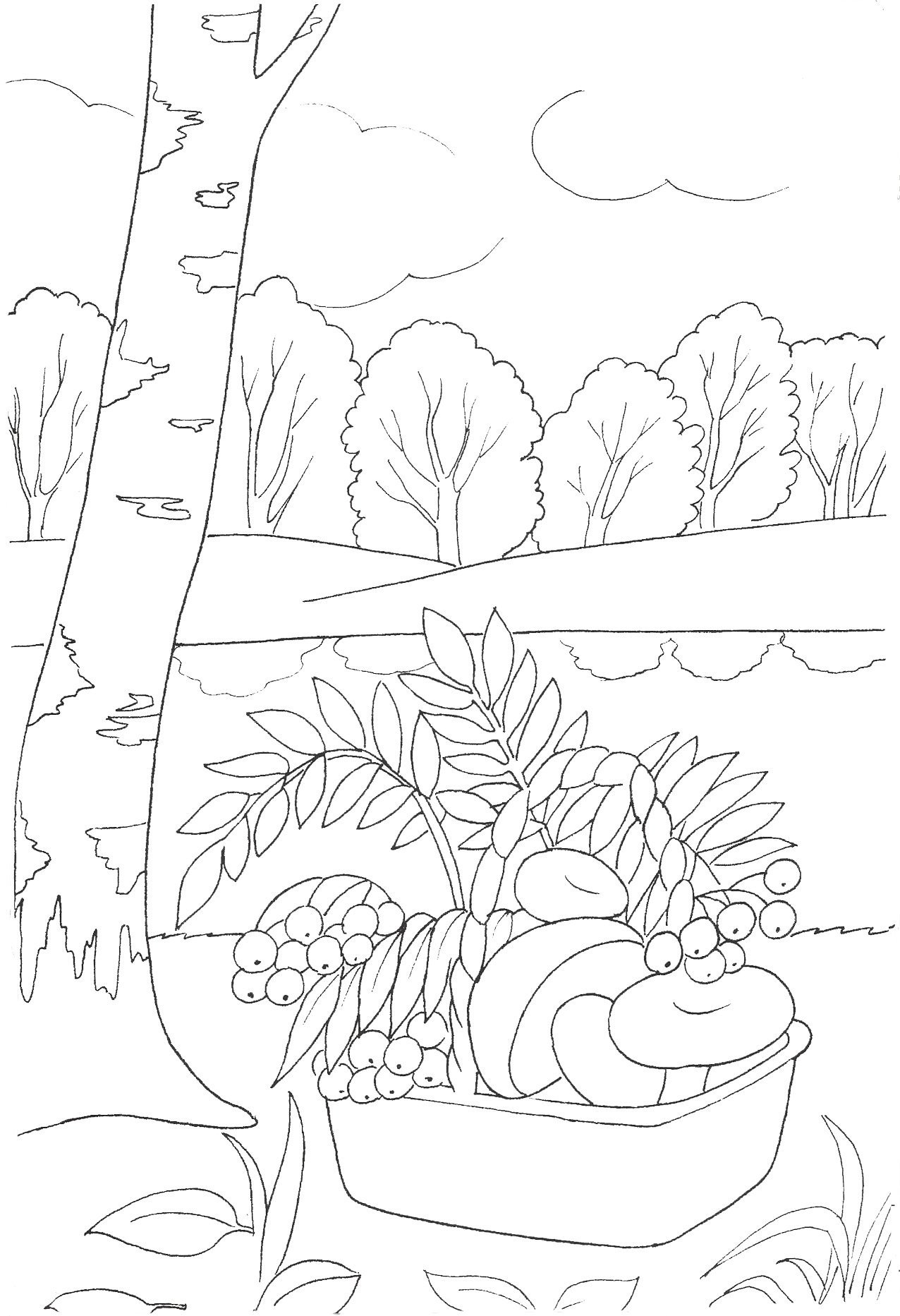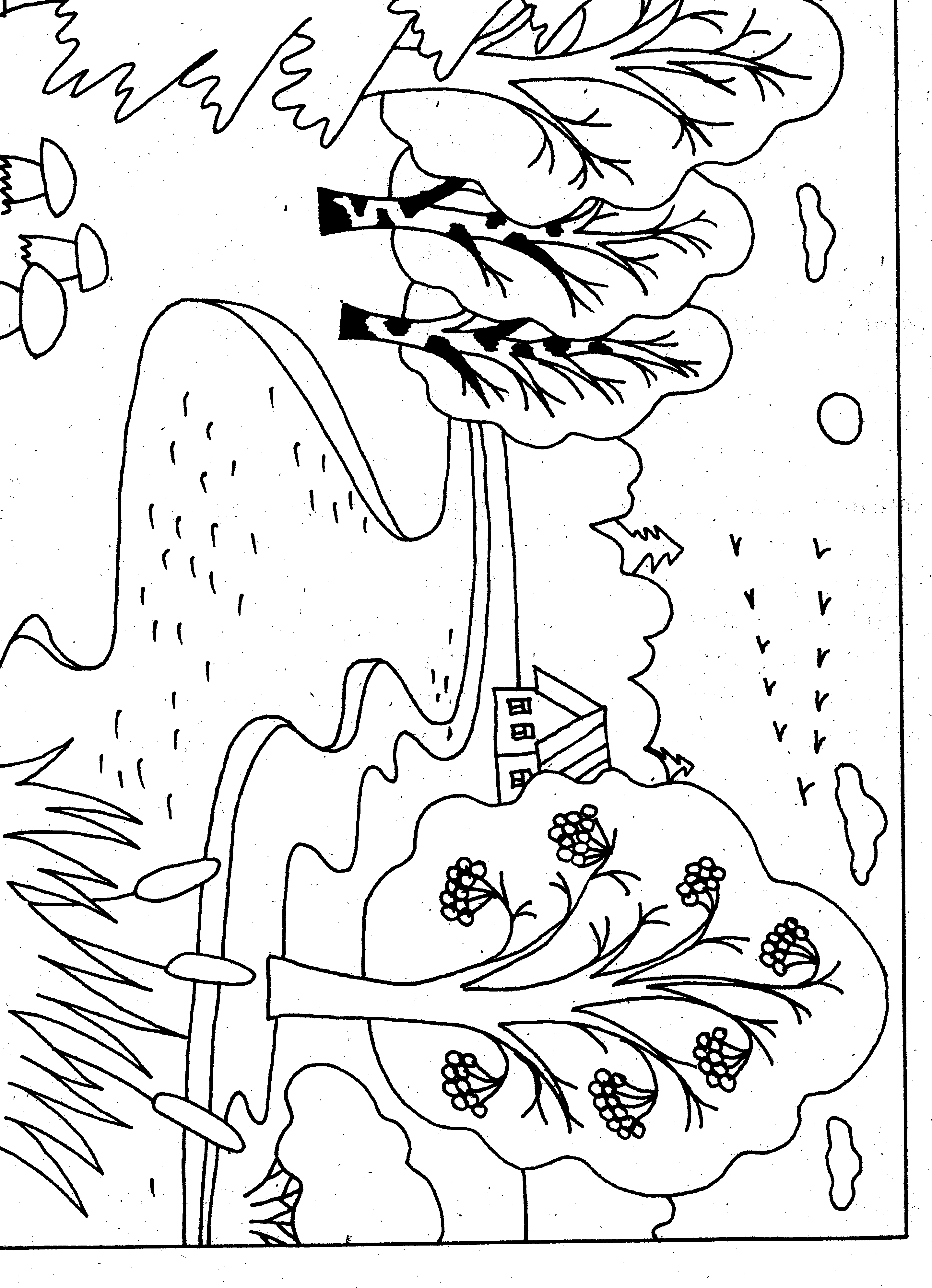 Осенний пейзаж раскраска для детей