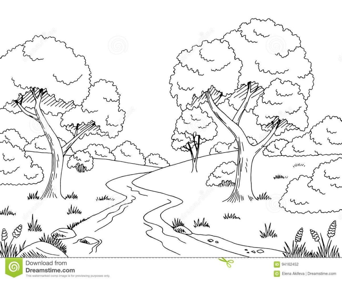 ![Весенний пейзаж раскраска]()