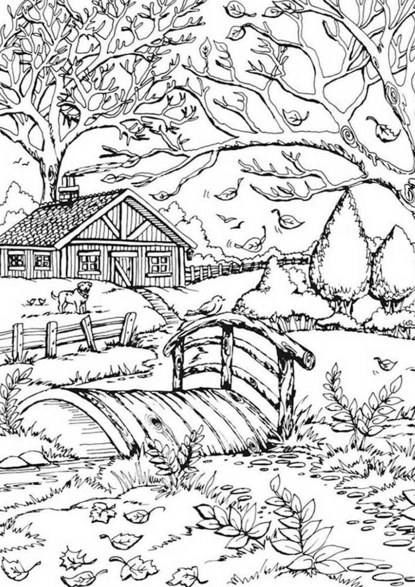 Осенний пейзаж раскраска