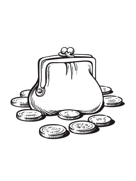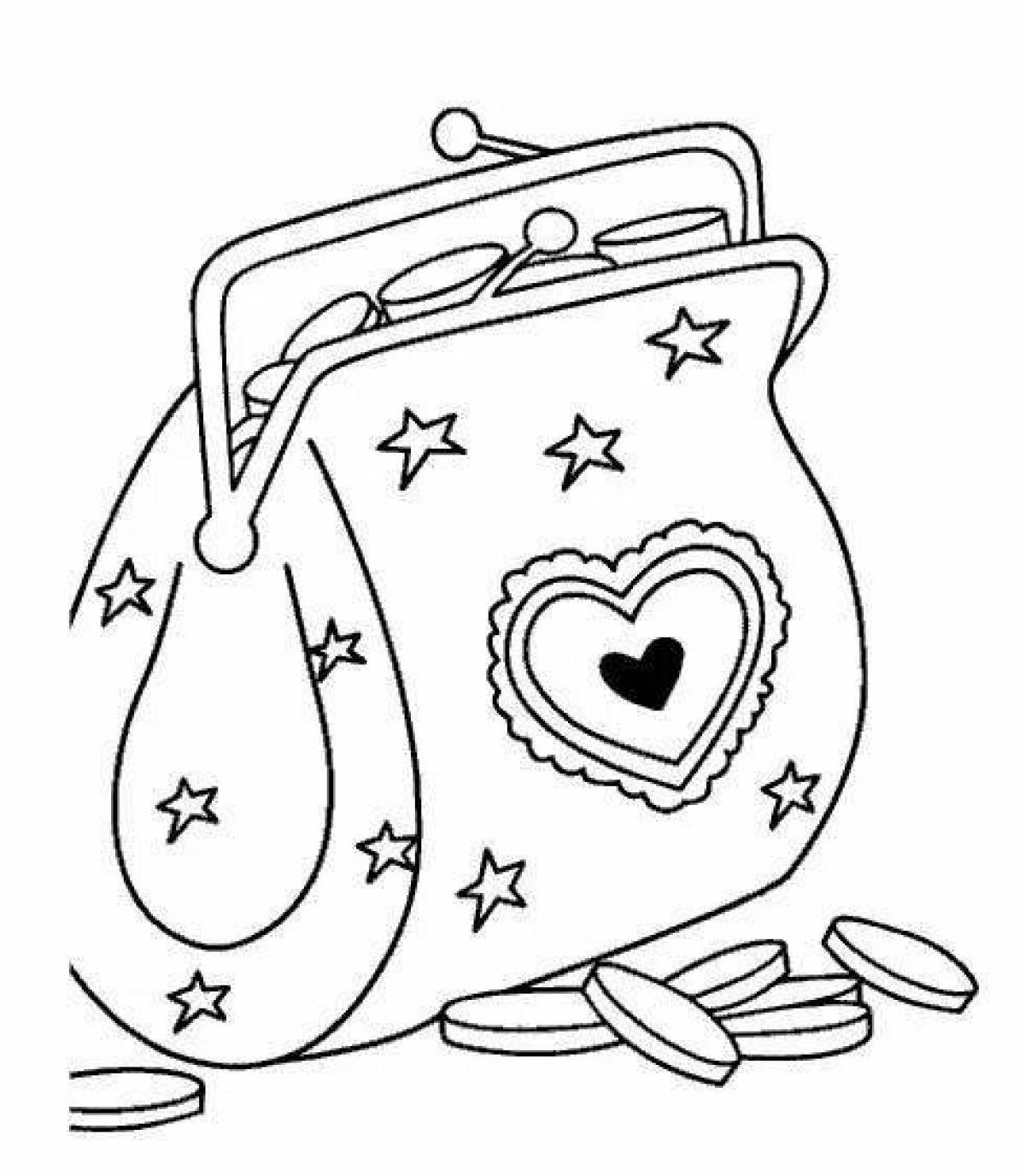 Раскраска кошелек для детей