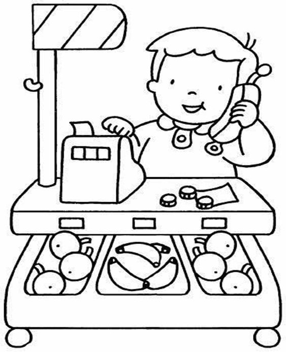 ![Продавец раскраска для детей]()
