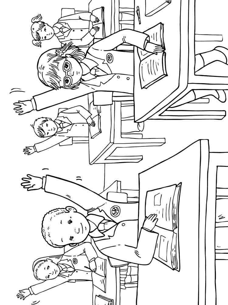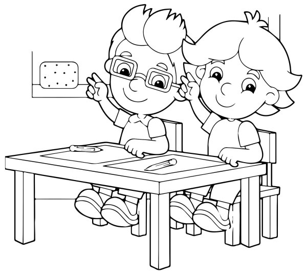 ![Раскраска ученики в классе]()
