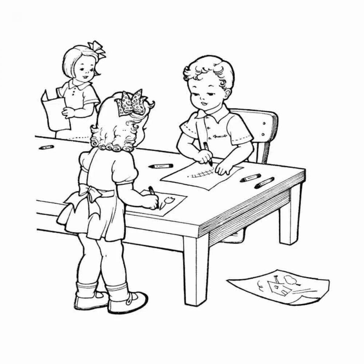 ![Раскраска дети в детском саду]()