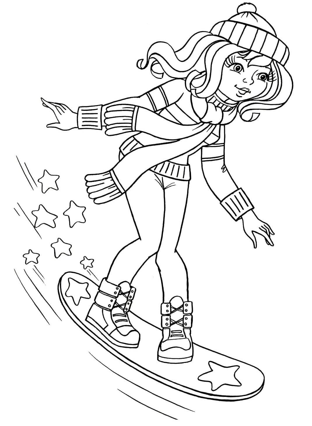 ![Кататься на лыжах раскраска]()