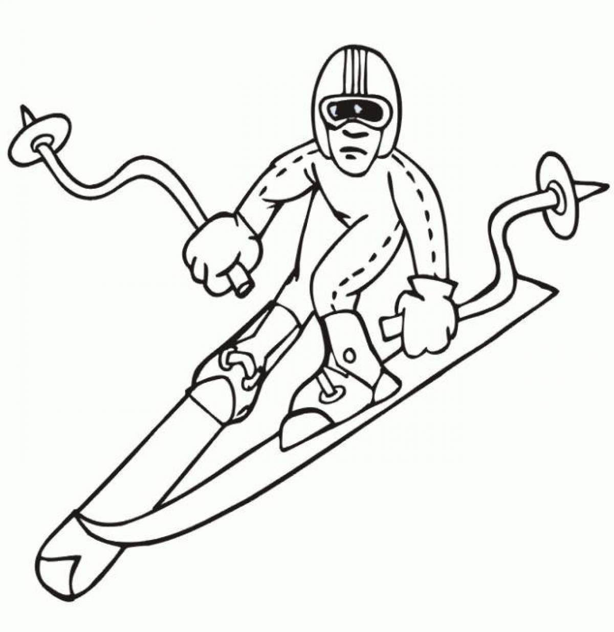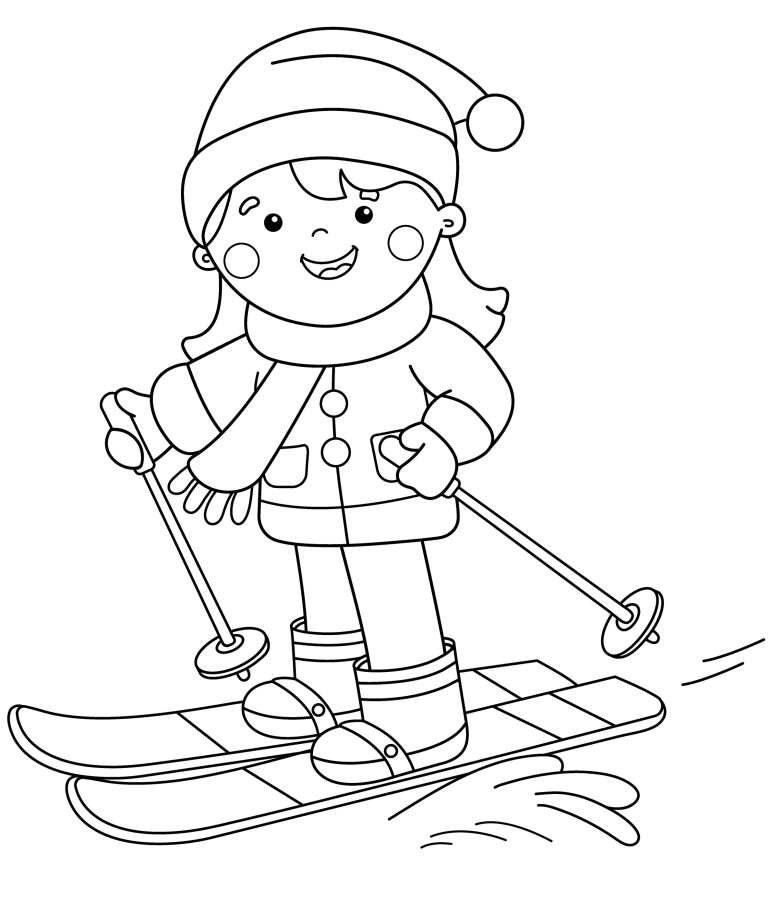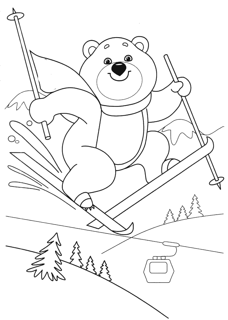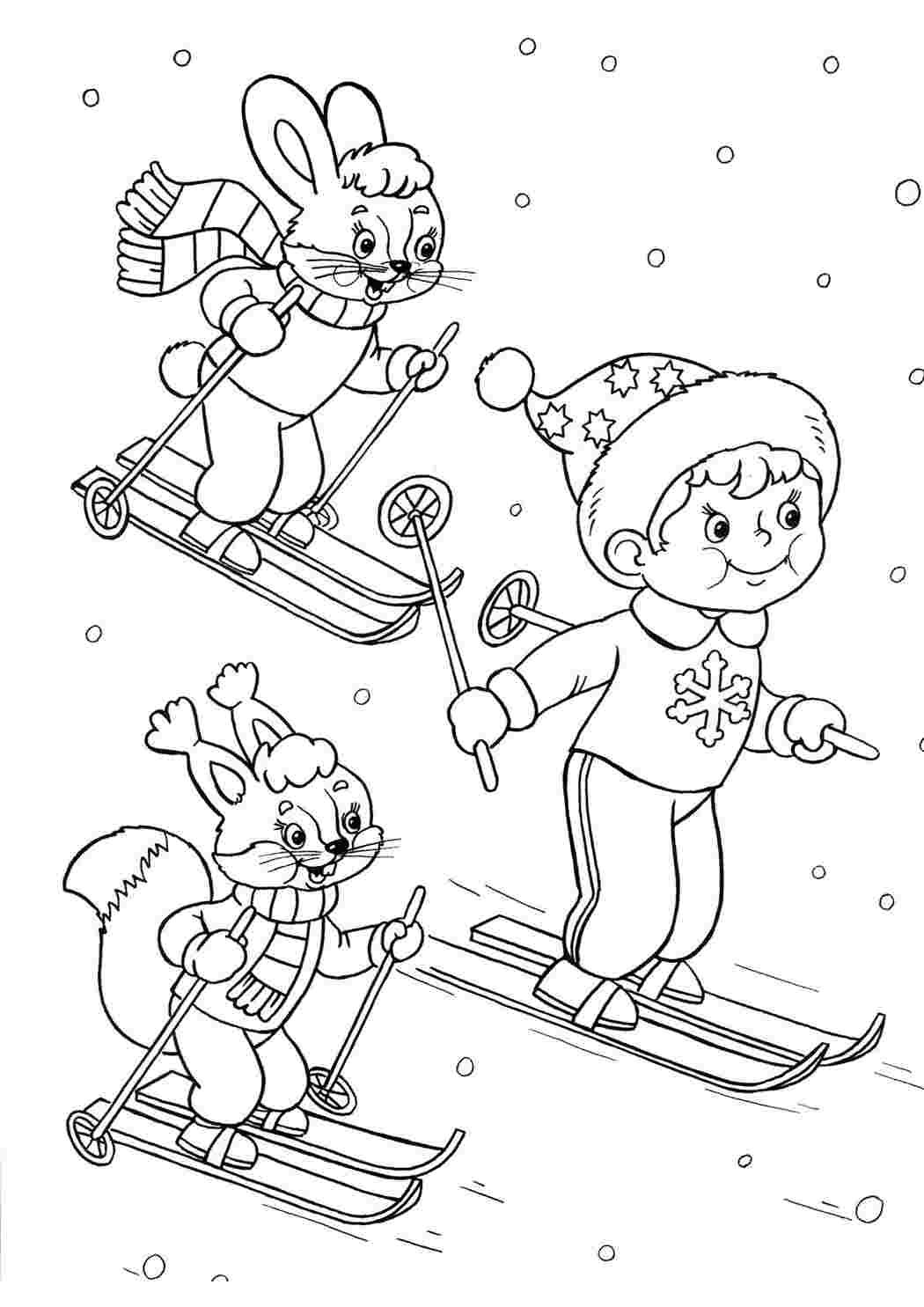 Кататься на лыжах раскраска