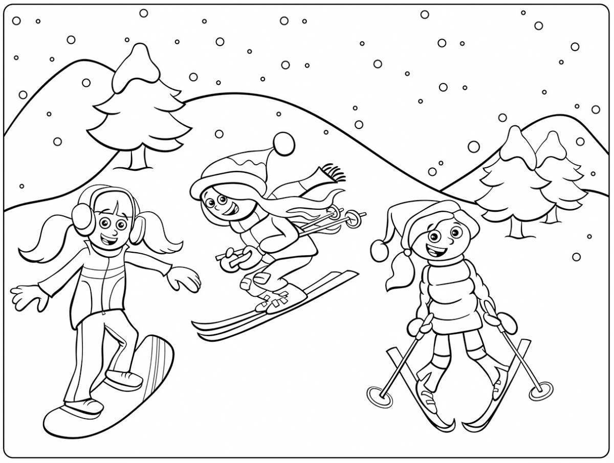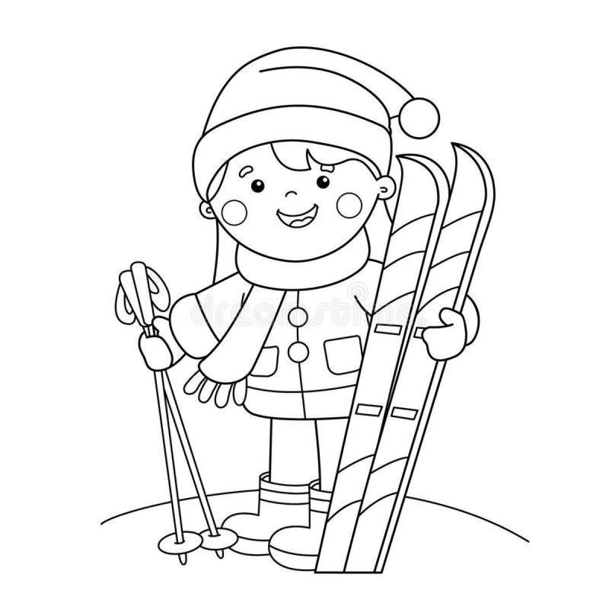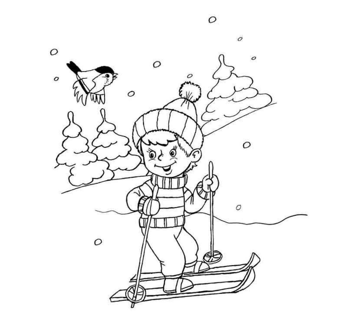 Кататься на лыжах раскраска