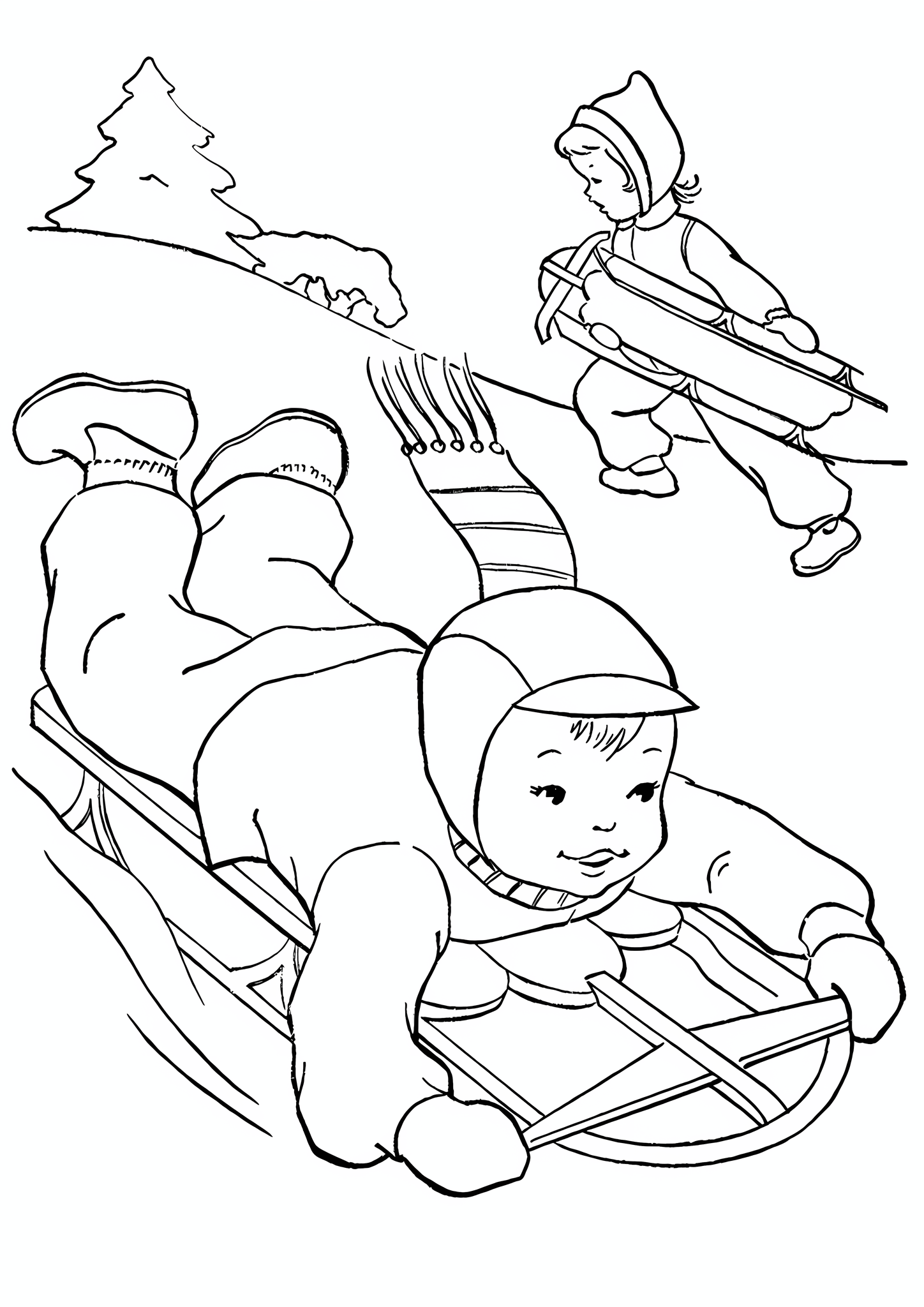 Дети на лыжах раскраска для детей