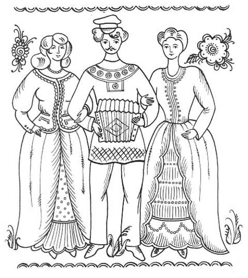 ![Народные промыслы России Городецкая роспись раскраски для детей]()