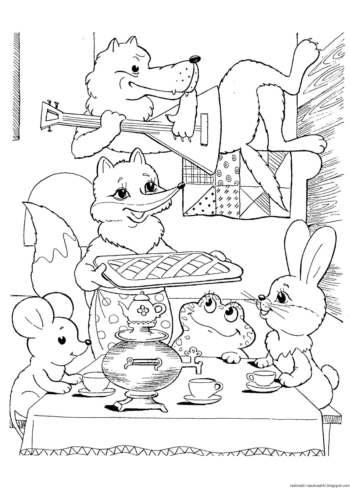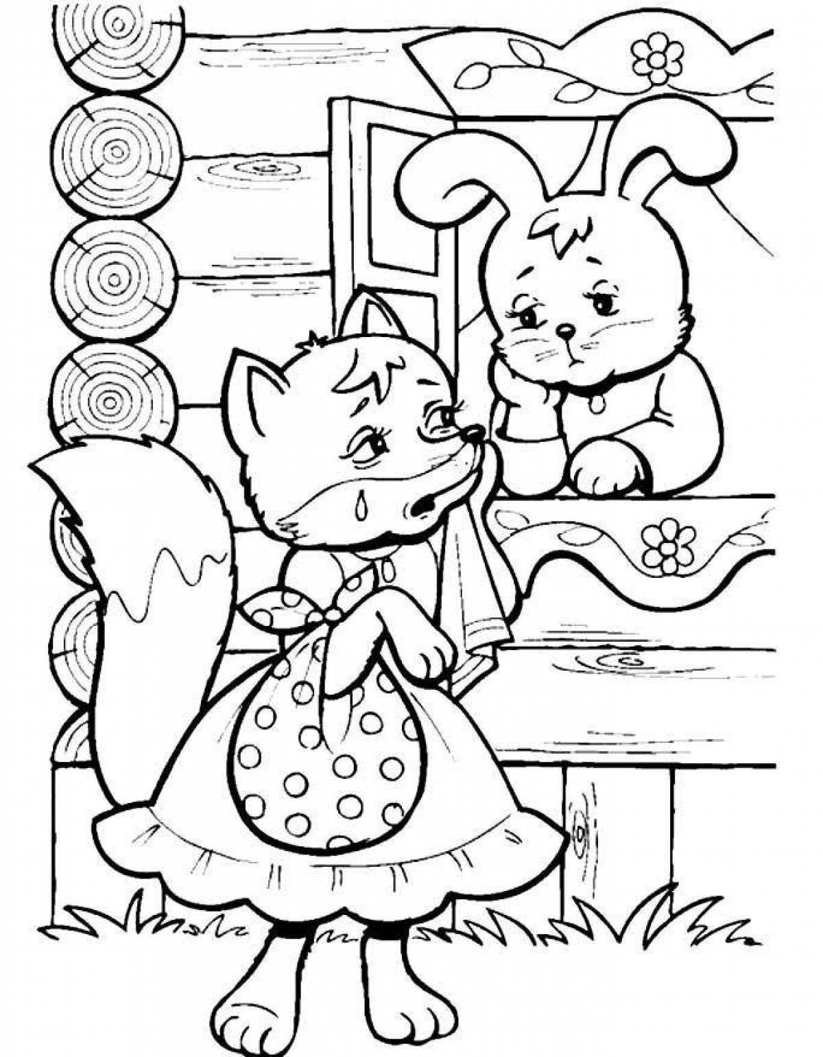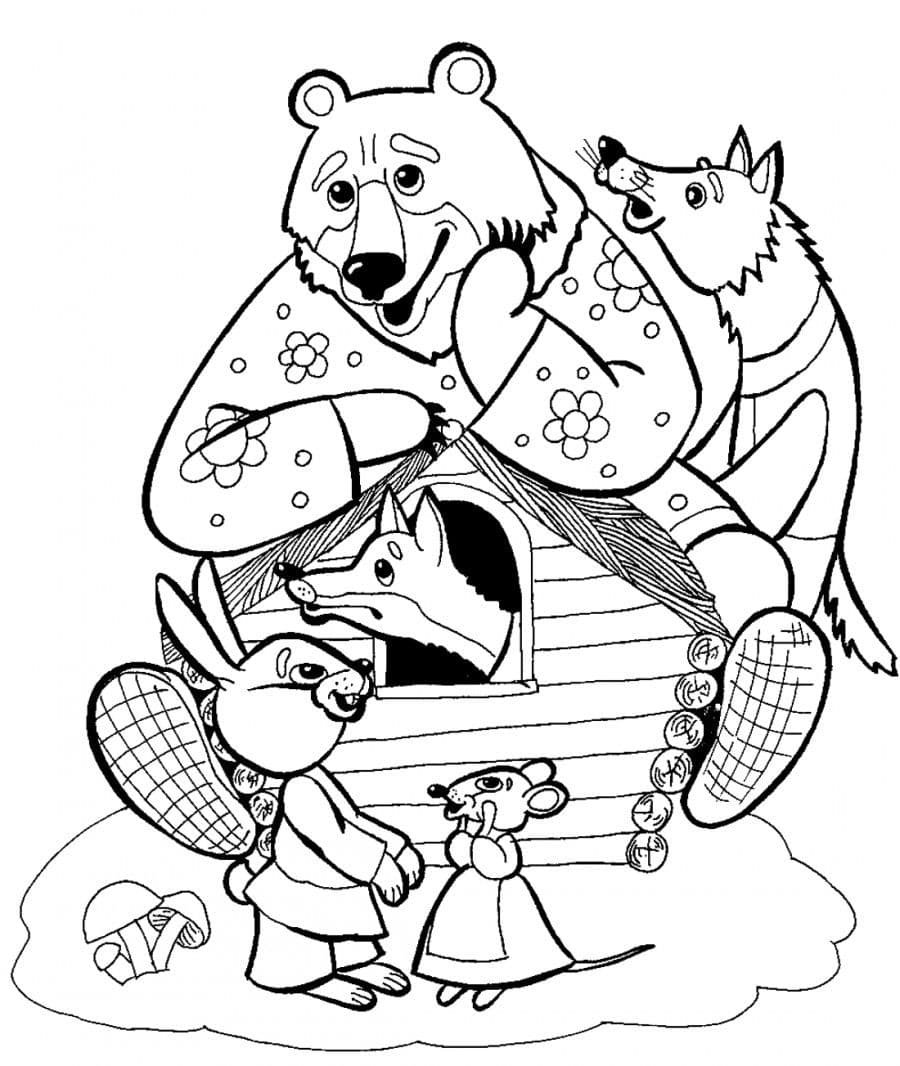 ![Раскраски к сказке Заюшкина избушка для детей]()