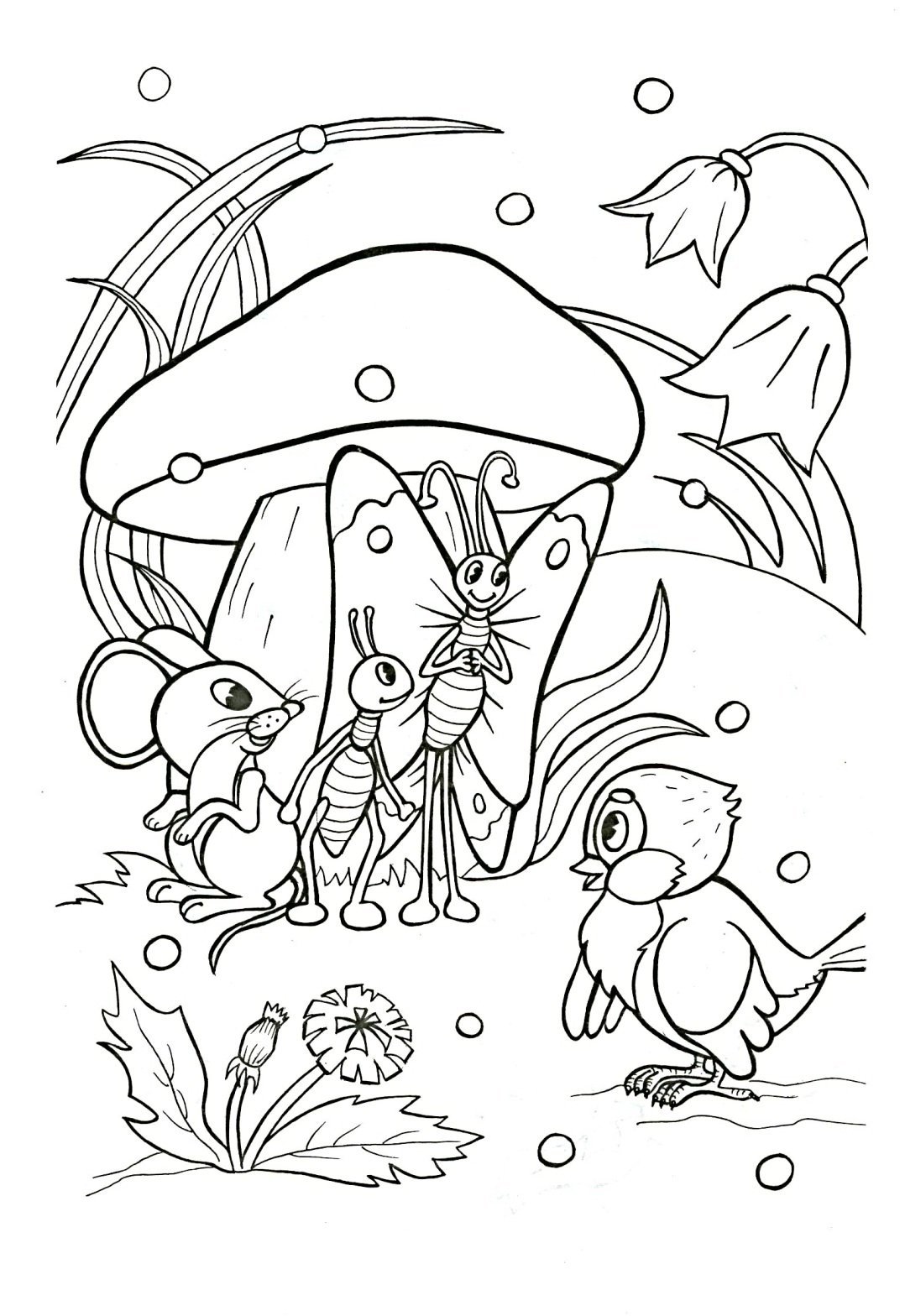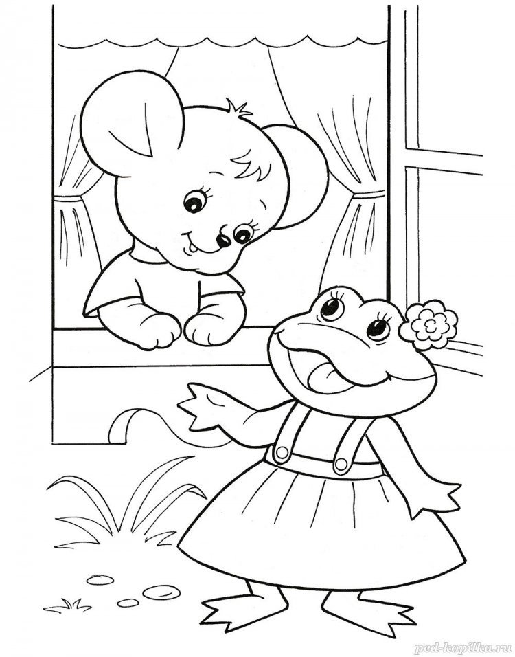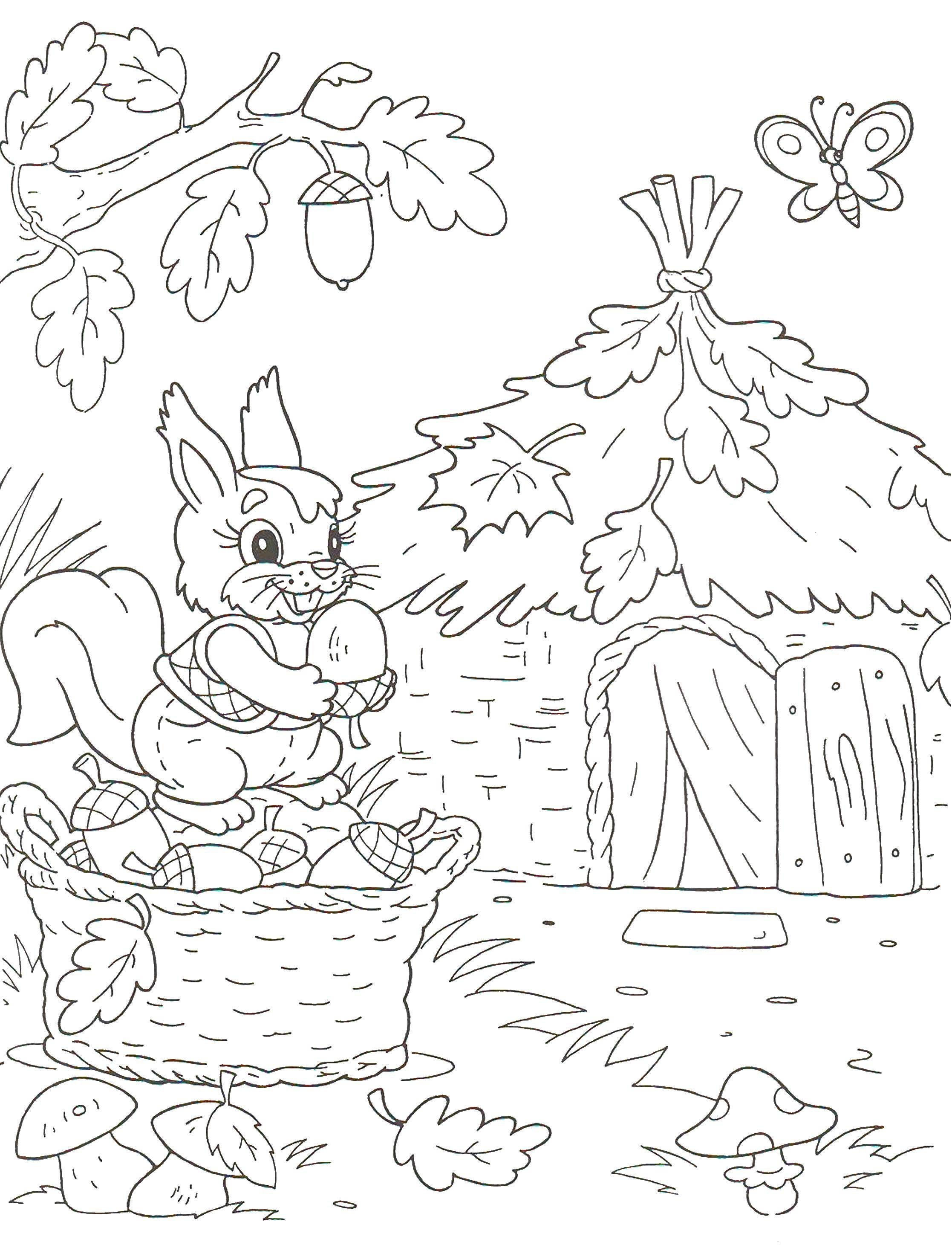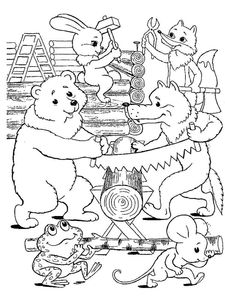 ![Раскраски к сказке Заюшкина избушка для детей]()