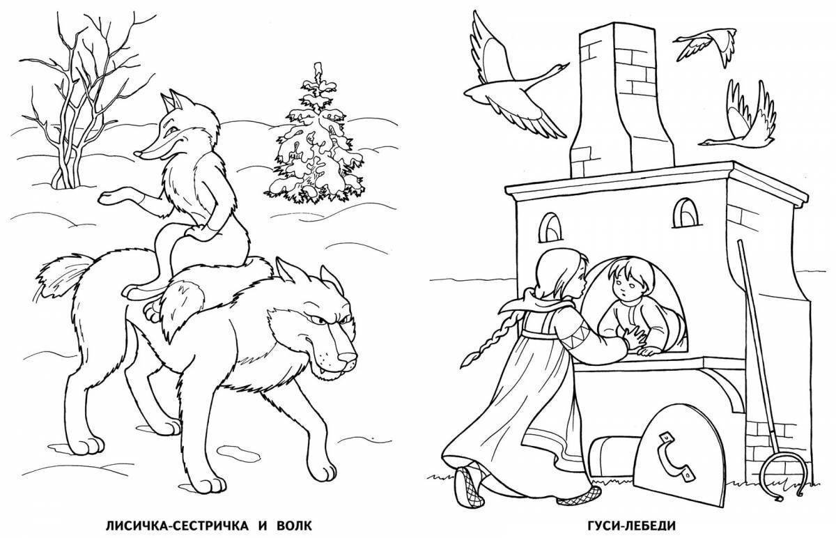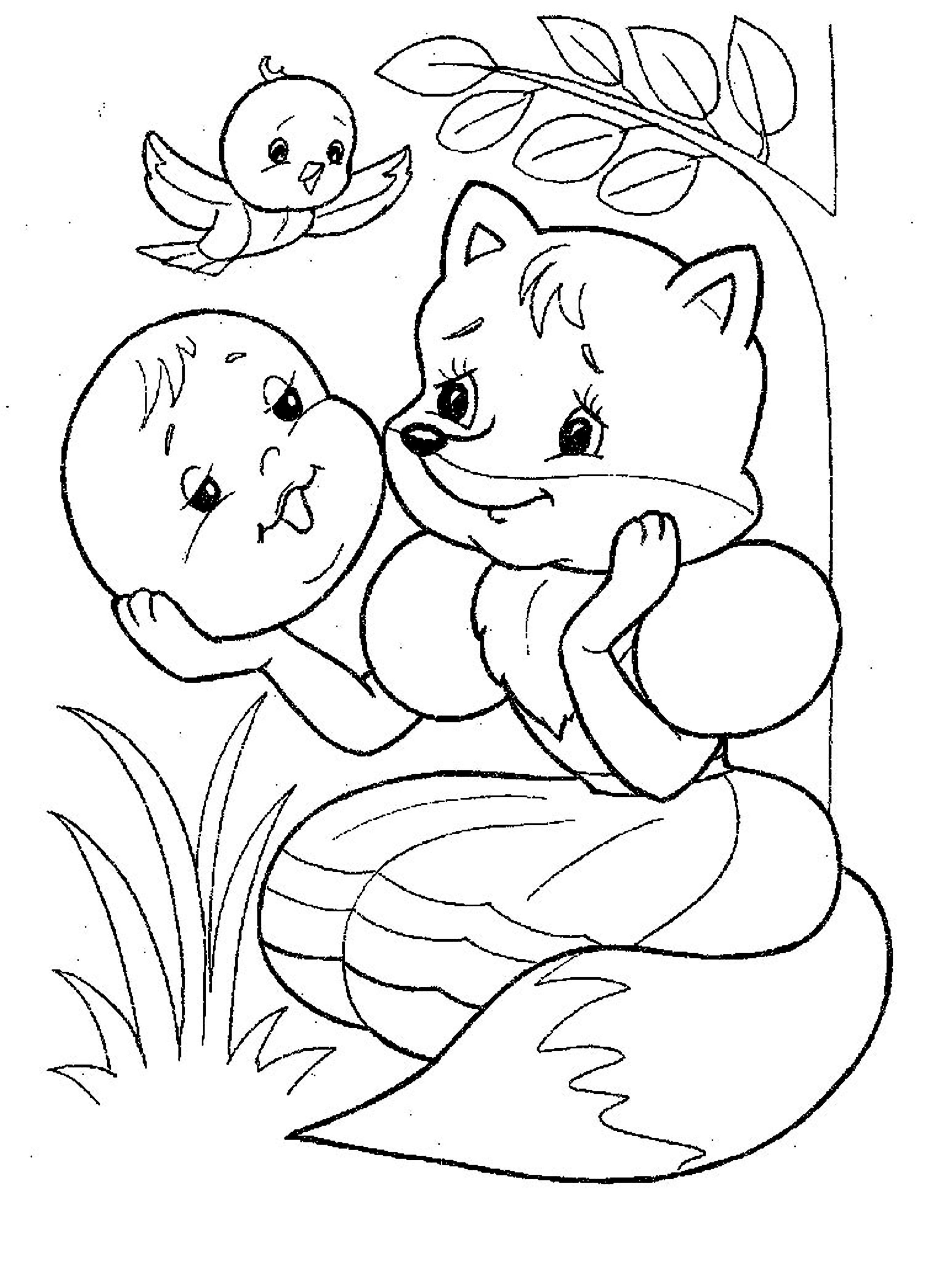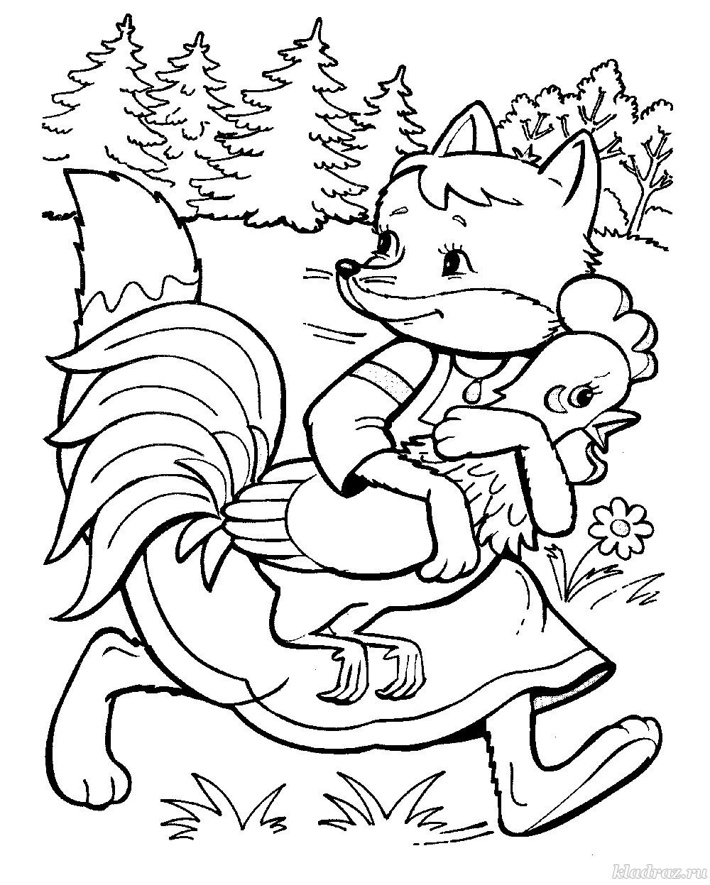 ![Раскраски для детей лиса и журавль русские народные сказки]()