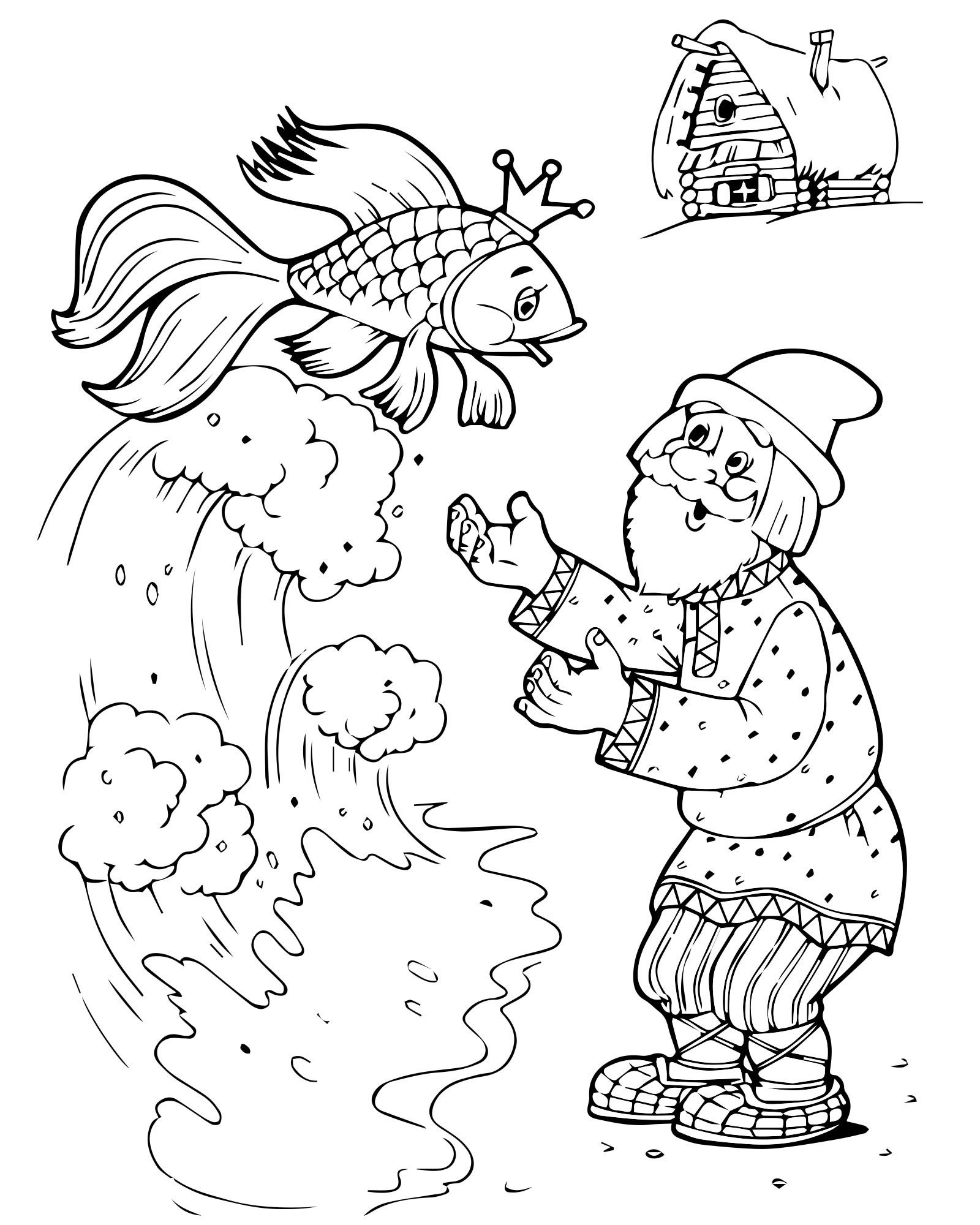 ![Сказка о золотой рыбке Пушкин раскраска]()