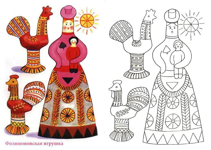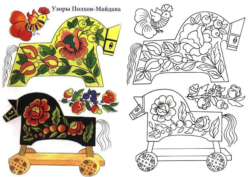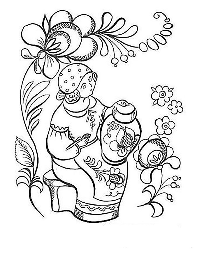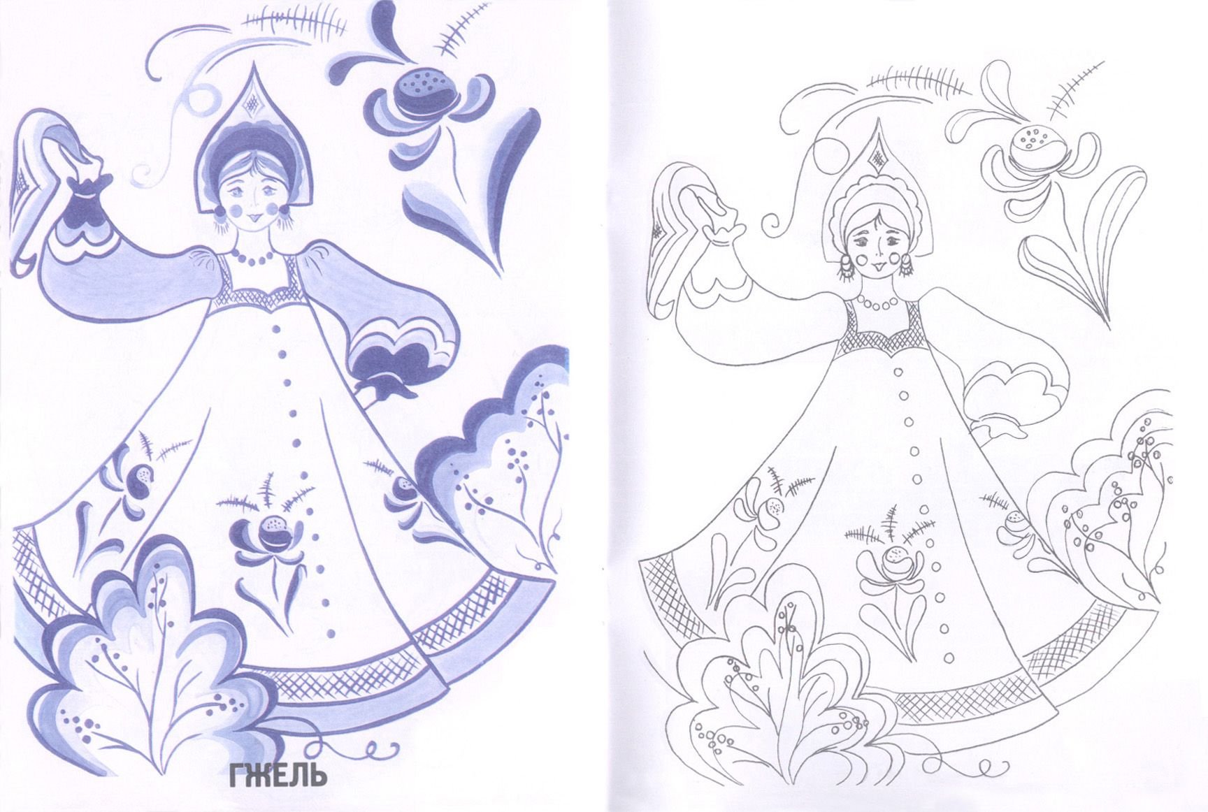 ![Раскраски Хохлома Гжель Дымковская игрушка]()