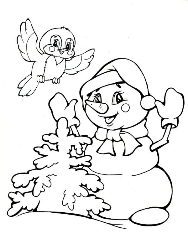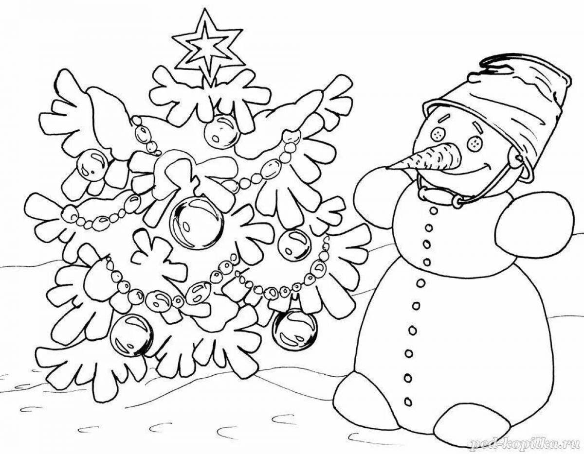 Снеговик с елкой раскраска