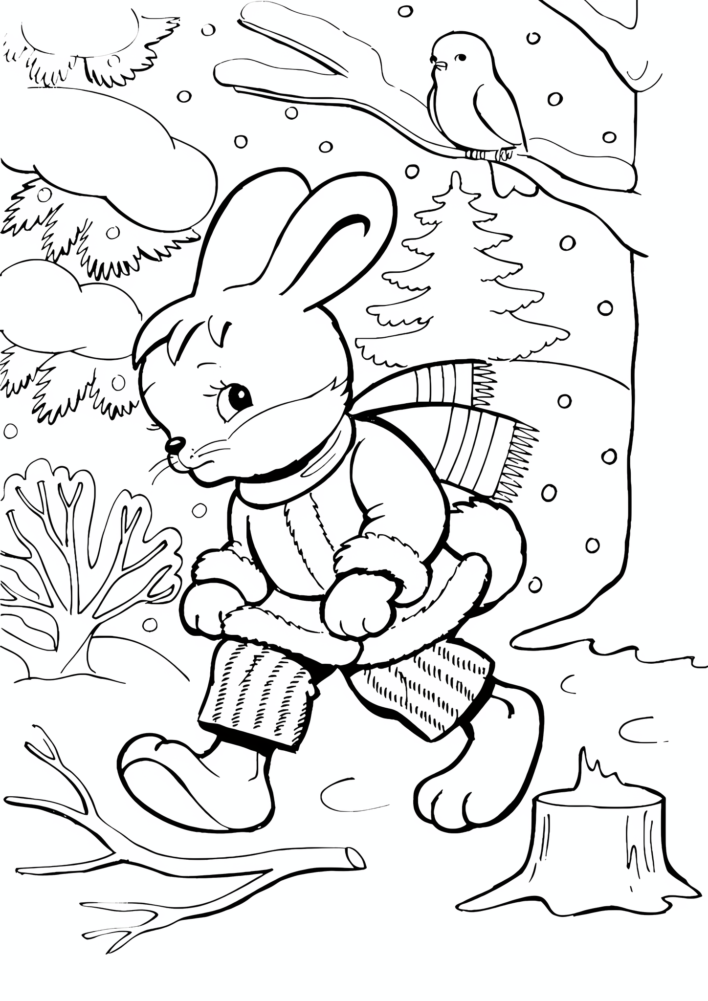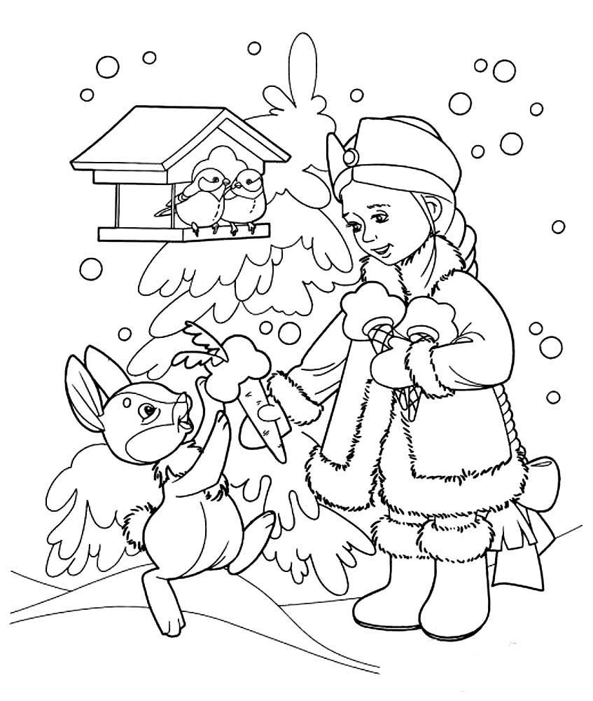 Зайчик зимний раскраска