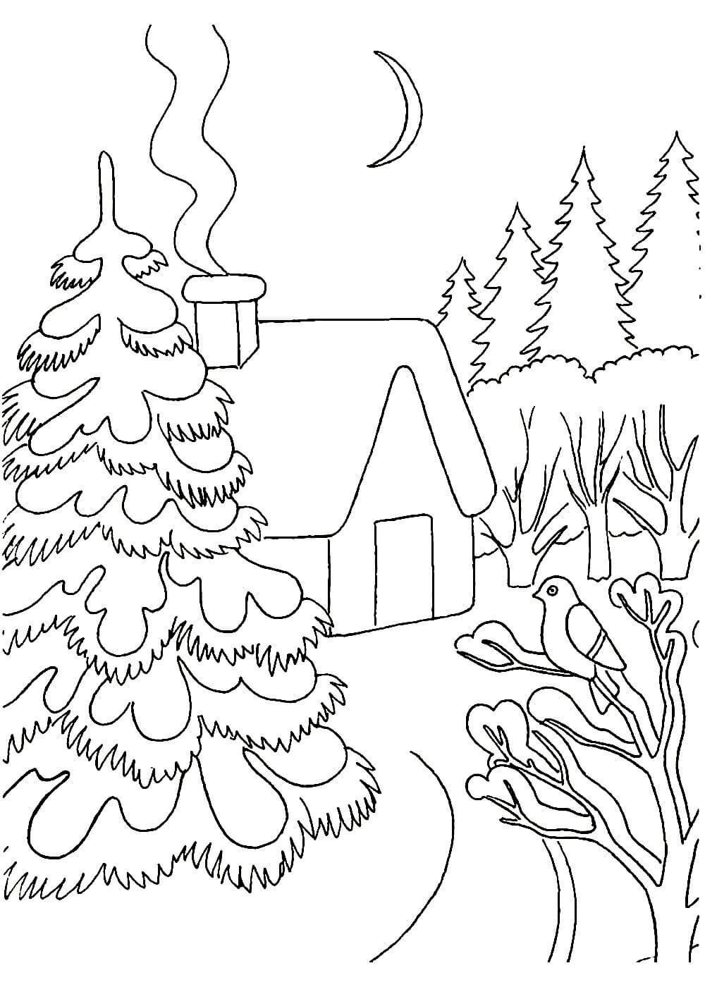 Зимний пейзаж для раскрашивания