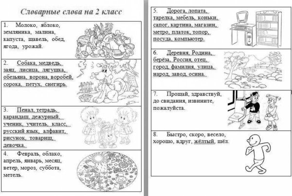 Словарные слова в картинках