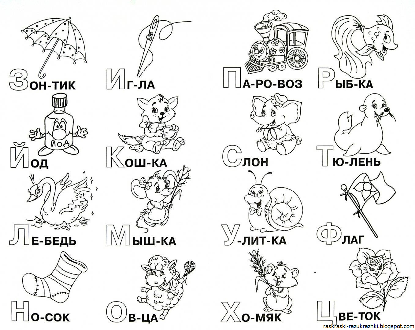 Веселый алфавит раскраска