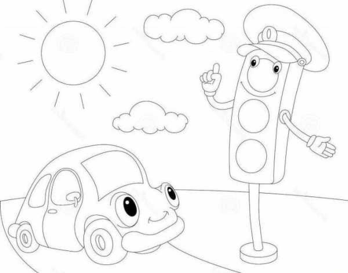 Машина и светофор раскраска