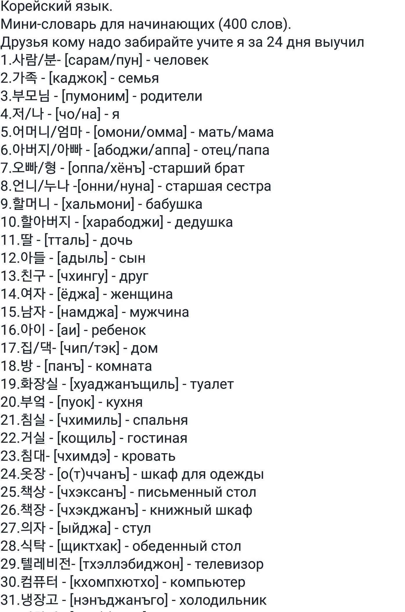 Корейские слова с переводом и транскрипцией для начинающих